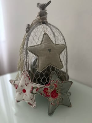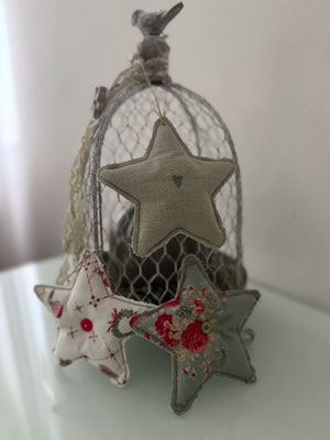 Draussen scheint die Sonne und färbt die Blätter gelb, der Herbst in seiner ganzen Pracht. Nur hier im Nähzimmer wird schon fleissig an ein paar Weihnachtprodukten zum verschenken genäht. Letztes Jahr war ich viel zu spät dran, so das ich einiges nicht nähen konnte...Wie diese süssen Sternenanhänger. Ich hab schon ein paar aus Leinen mit einem süssen kleinen Herz oder kleiner Tanne in der Mitte genäht, aber auch aus tollem gemusterten Stoff. Es wird auch noch ein paar mit Lavendel befüllt geben. Ein tolles kleines Mitbringsel...