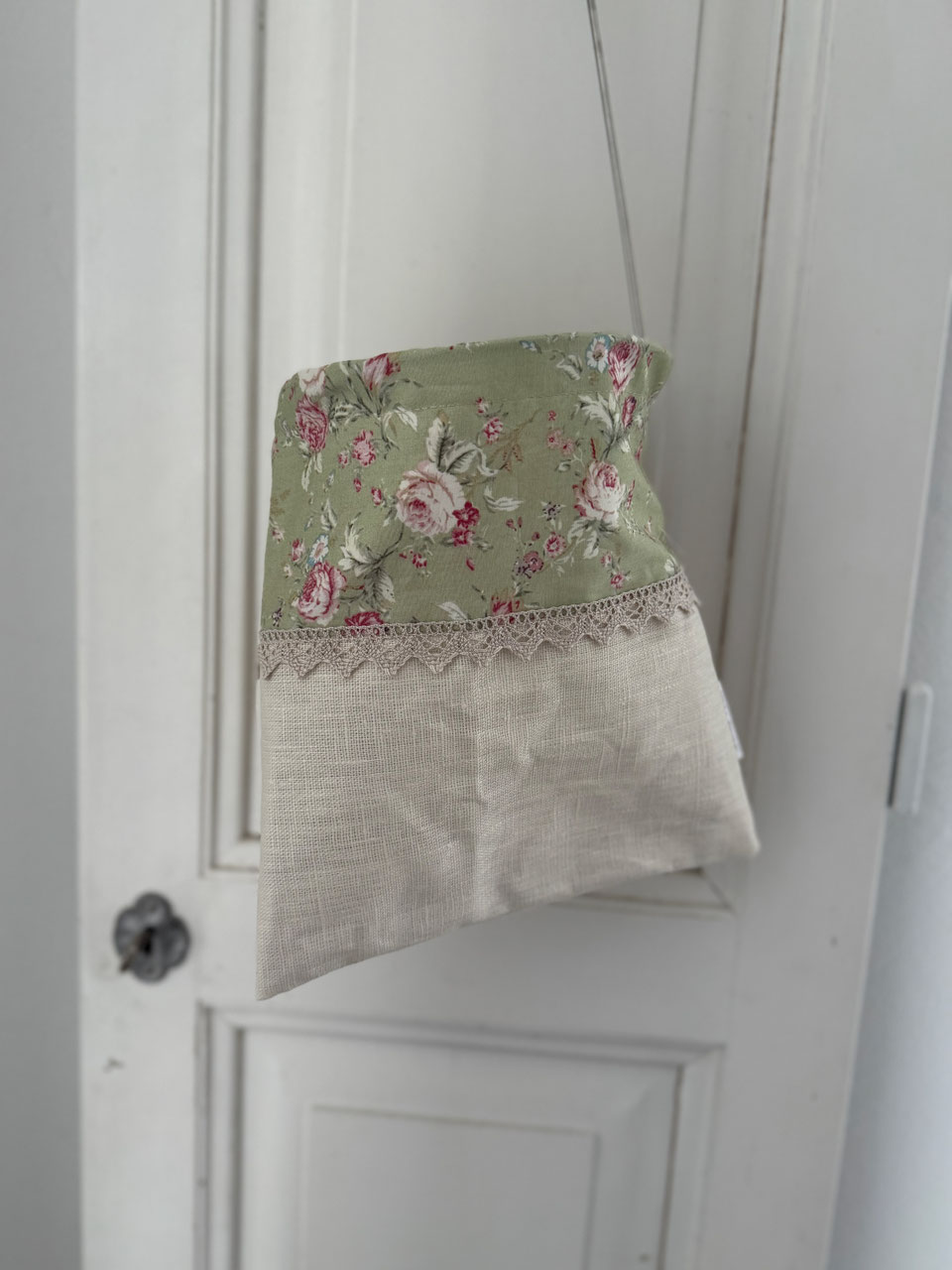 Baumwollstoff lindengrün mit Rosenmuster