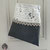 Baumwollstoff weiss mit graublauen Blumen-Schriftmuster